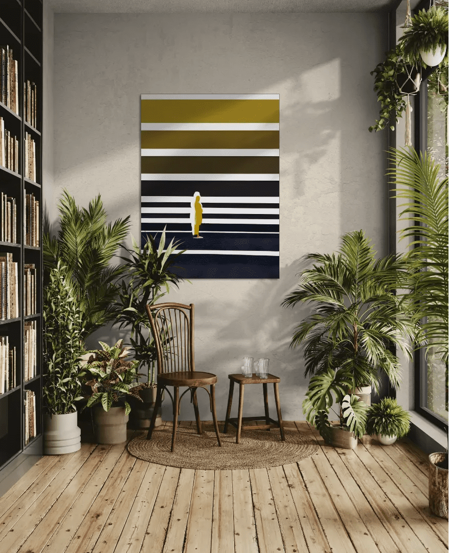 I created "Plain Sailing" to capture calm and clarity using bold horizontal stripes. Each stripe represents different emotions and moments in life. The artwork evokes the serenity of a calm sea, reflecting the peacefulness of life's journey. Inspired by a serene day on the water, where the sky and sea blended into one, "Plain Sailing" reflects finding clarity amid life's complexities. I hope this artwork encourages viewers to embrace smooth sailing moments. I envision it as a striking addition to any contemporary art collection.