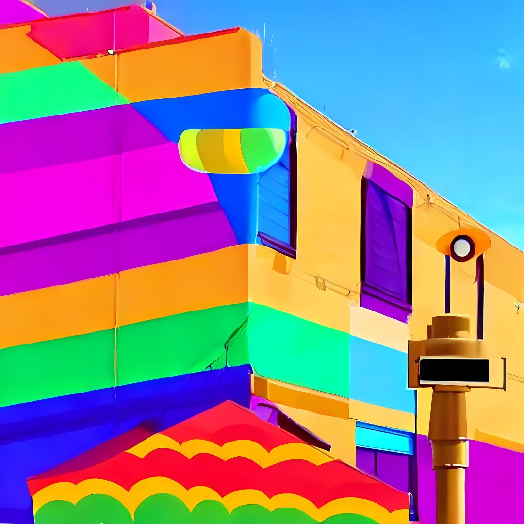 From the Urban Reverie Series. The riot of colors within “I CC YOU” is not merely an aesthetic choice; it’s a rebellion against the grayscale monotony of surveillance. Each hue in the building’s rainbow façade is a brushstroke of dissent.